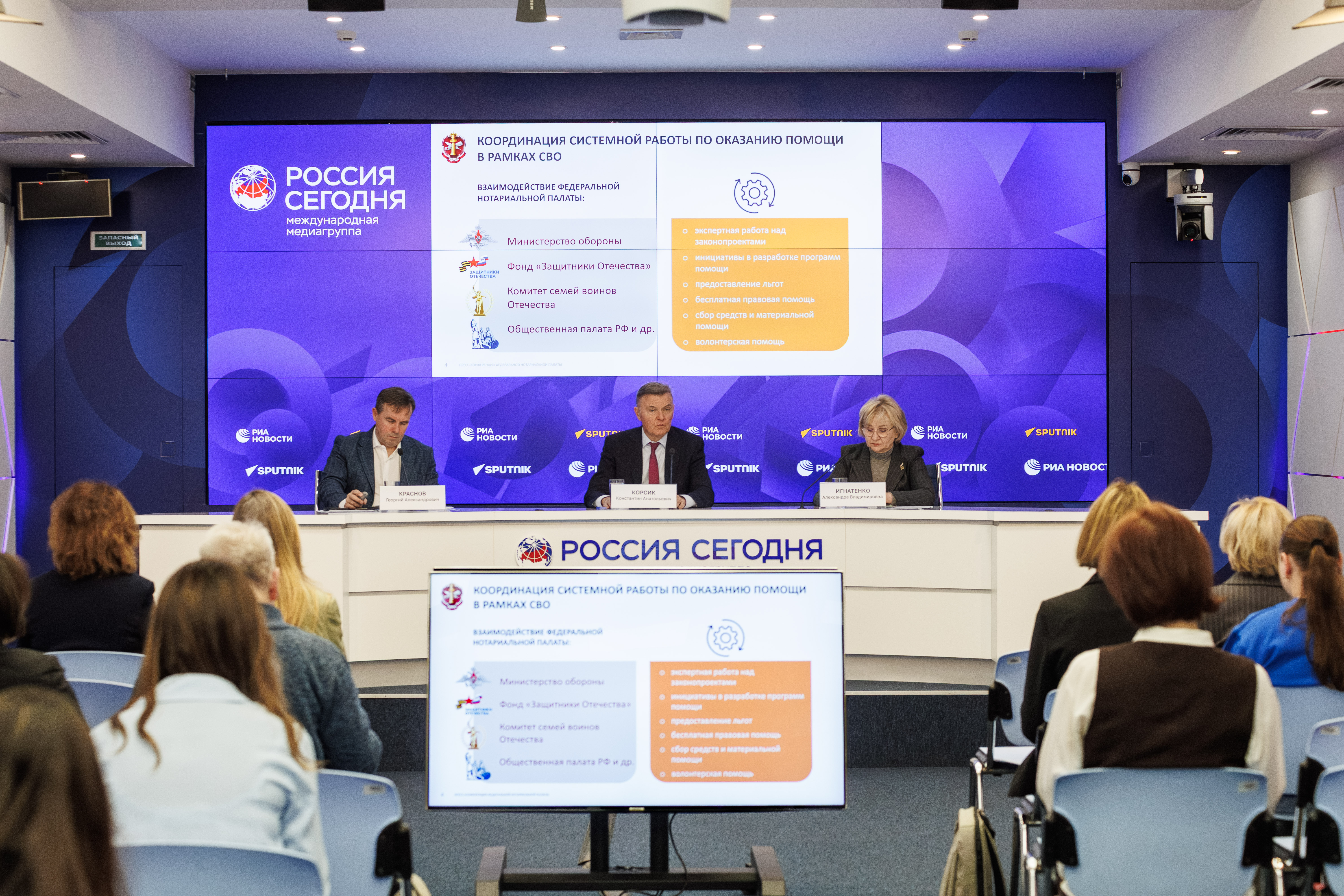 Нотариальное сообщество тесно работает с Минобороны, фондом «Защитники Отечества», Комитетом семей воинов Отечества и другими общественными организациями для координации оказываемой всесторонней помощи.