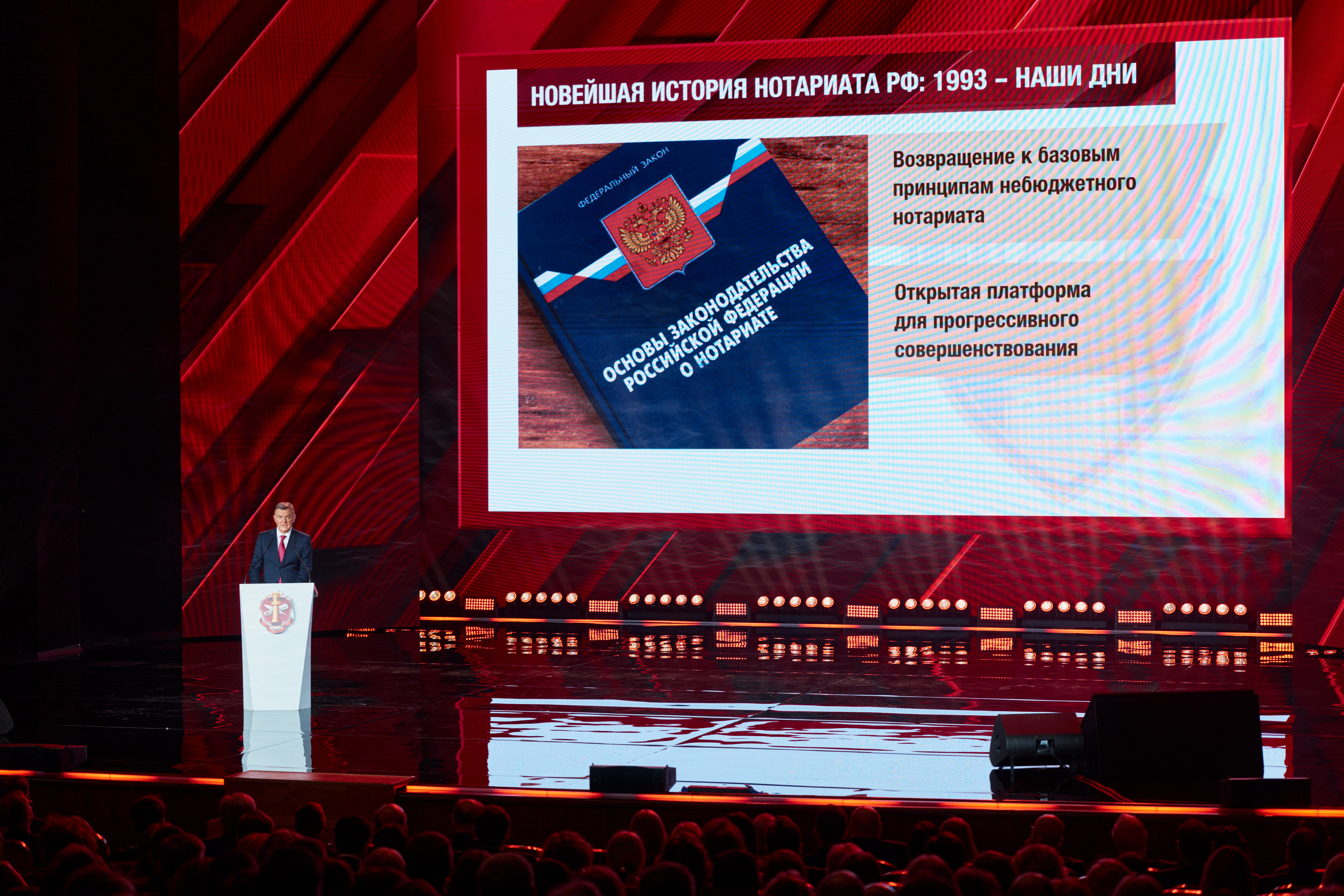 Президент Федеральной нотариальной палаты Константин Корсик в своем выступлении подчеркнул, что сегодня российский нотариат — это стройная самофинансируемая система, насчитывающая более 8 тысяч специалистов по всей стране. Главным вектором развития профессии в последние годы стала масштабная цифровизация.